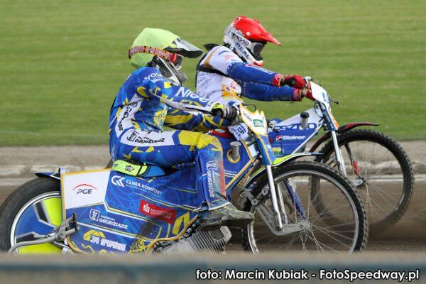 Janusz Kołodziej szybko poradził sobie z Sewerynem Orgackim, a po chwili do kolegi z pary dołączył Emil Sayfutdinov. Rosjanin na pierwszym łuku po zewnętrznej minął Nickiego Pedersena.