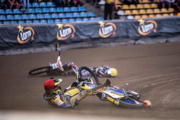 Bieg przerwany. Na drugim łuku upadł Karczmarz, którego zaatakował Jasiński. Gorzowianie na wejściu w drugi łuk wyprzedzali Zagara.