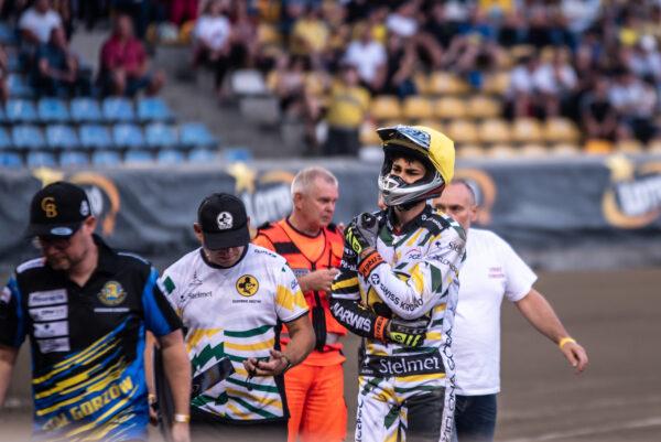 Bartosz Zmarzlik na starcie pewnie wykorzystał pierwsze pole. Za jego plecami przed Jasińskiego wskoczyli Zagar i Pawliczak. Bieg układał się na remis, ale na drugim łuku uślizg zaliczył Pawliczak, ale wstał z toru i bieg był kontynuowany. Pewne zwycięstwo Zmarzlika