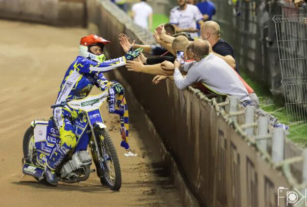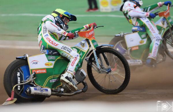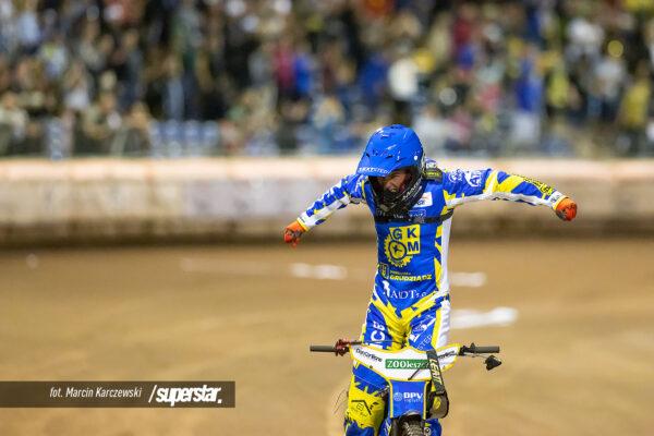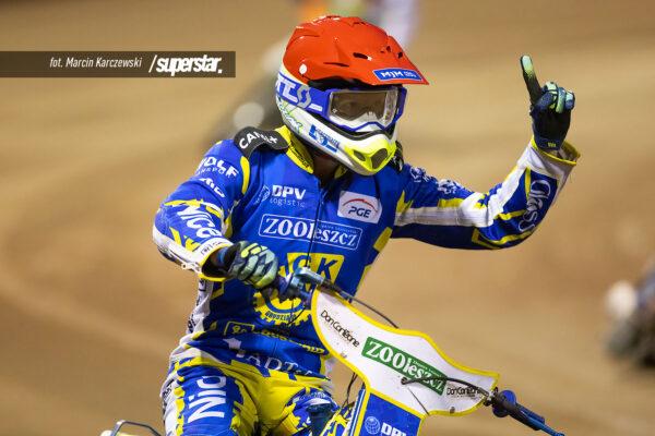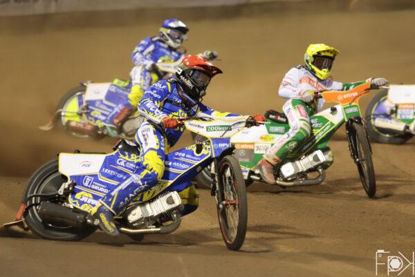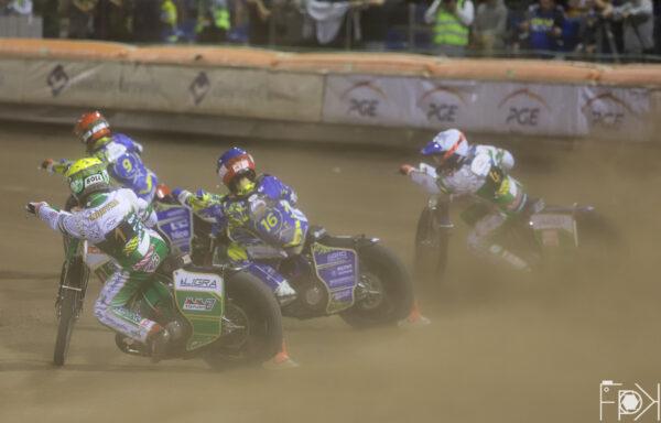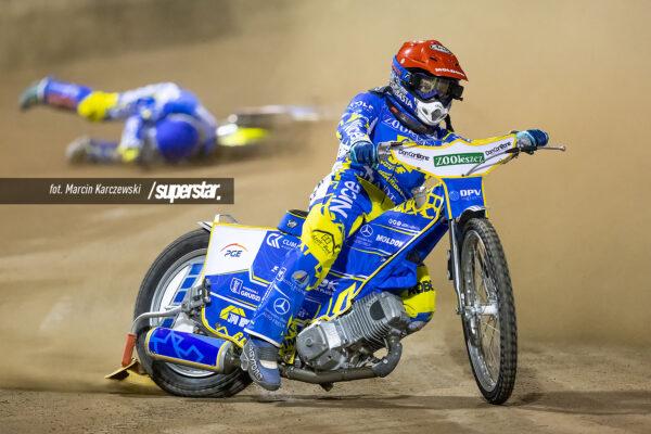 Świetny Krzysztof Kasprzak! Zawodnik gospodarzy wykorzystał błąd Kacpra Woryny, który spadł na ostatnią pozycję, a chwilę później wyprzedził drugiego Fredrika Lindgrena. Podwójne zwycięstwo gospodarzy na początek spotkania.