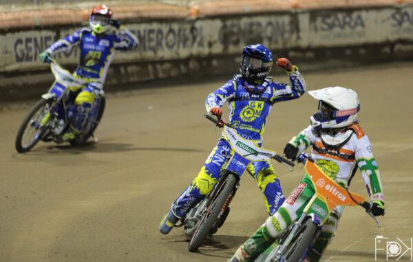 Zgodnie z przewidywaniami, para juniorów gości nie miała problemu odnieść podwójnego zwycięstwa w tym biegu.