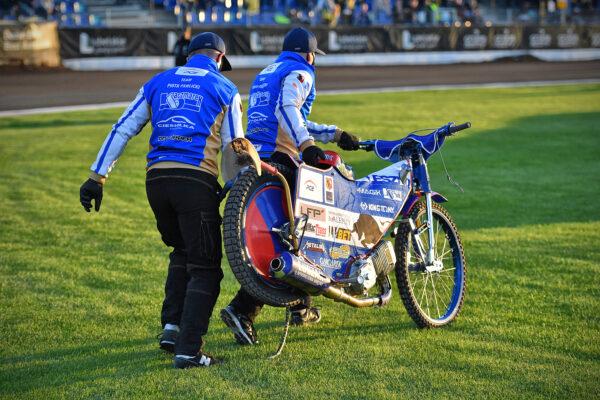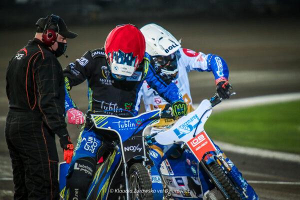 Zawodnik Motoru od razu zjechał z toru, natomiast junior gości po chwili także udał się do parku maszyn.
