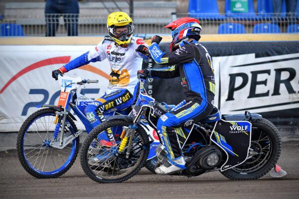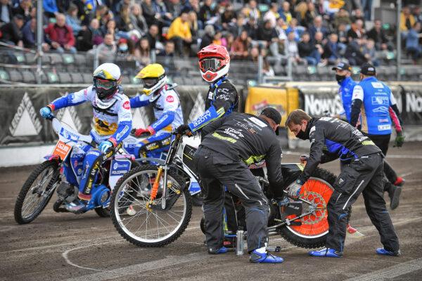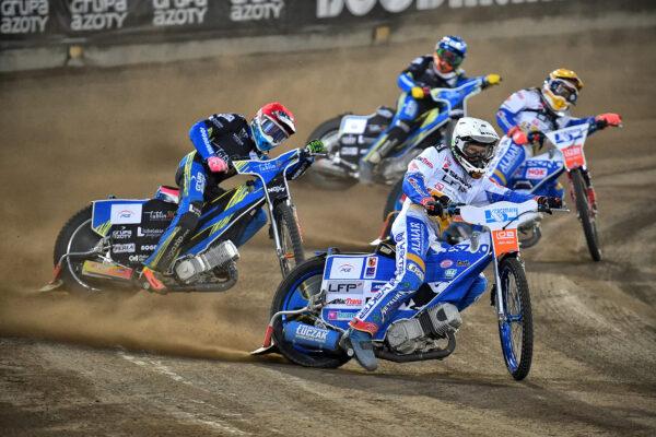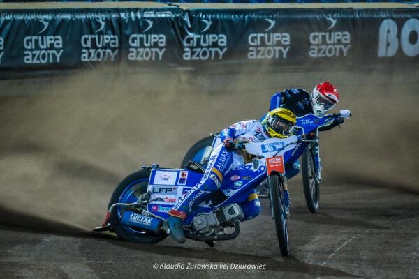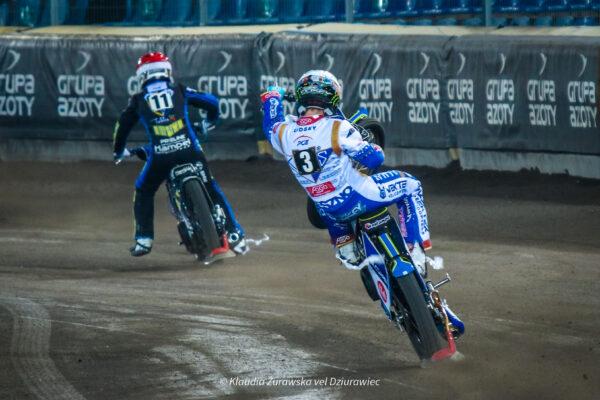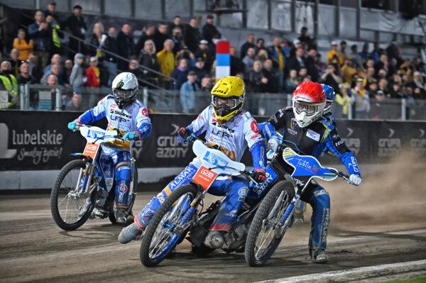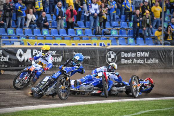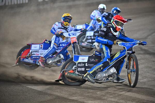 Fenomenalnie spod taśmy wyszedł Dominik Kubera, a na przeciwległej prostej dołączył do niego Mikkel Michelsen. Janusz Kołodziej na mecie minimalnie gorszy od Kubery.