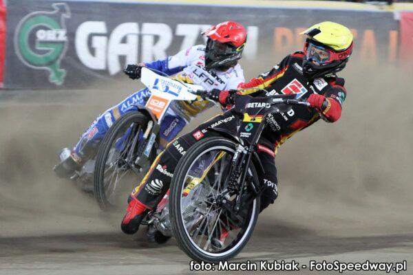 Leszczynianie wygrali start, ale na pierwszym łuku poradził sobie z nimi Artem Laguta, a po kilku chwilach duet gospodarzy wyprzedził również Maciej Janowski. BETARD SPARTA powiększa przewagę przed wyścigami nominowanymi.