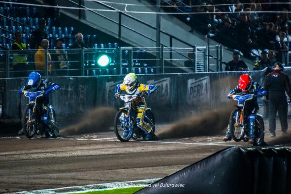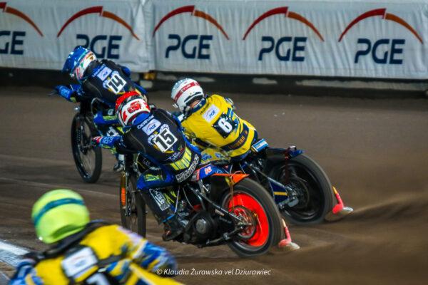 Na pierwszym łuku para Motoru była na prowadzeniu, jednak szybko wyprzedził ich Bartosz Zmarzlik.