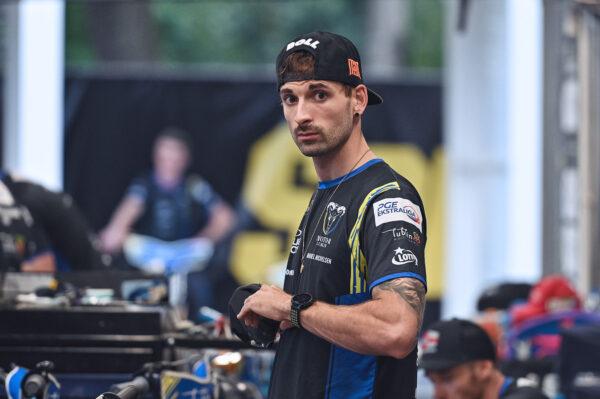 Zawodnik Motoru szybko podniósł się z toru i zmierza w stronę parku maszyn.