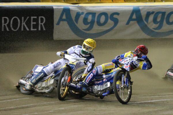 Co za atak Mikkela Michelsena! Para gorzowskiej Stali na pierwszym łuku była na podwójnym prowadzeniu, ale na wejście na przeciwległą prostą zostawiła na środku autostradę i Mikkel Michelsen wskoczył na prowadzenie, którego już nie oddał!