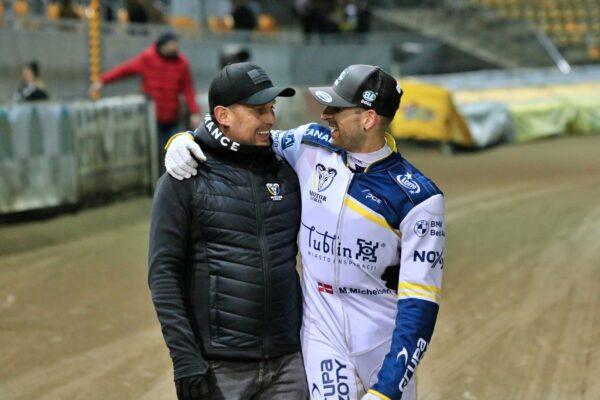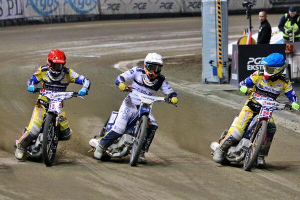 Mikkel Michelsen zakłada na pierwszym łuku po starcie Zmarzlika! Bieg ułożył się na 4:2 dla gości z Lublina. Na dystansie Michelsen powiększał przewagę nad Zmarzlikiem, który zdefektował na ostatnim łuku i wyprzedził go na ostatnich metrach Drabik.