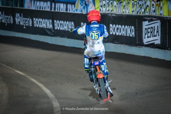 Norbert Krakowiak najlepiej wyszedł spod taśmy i pewnie jechał po zwycięstwo, jednak na ostatnim okrążeniu Dominik Kubera napędził się z wyjścia z pierwszego łuku i wyszedł na prowadzenie.