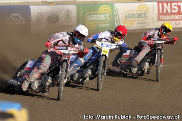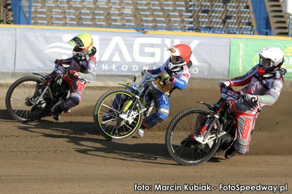 Ze startu lepiej wyjechali przyjezdni, ale Damian Ratajczak na przeciwległej prostej bezpardonowo wjechał pod Jakuba Pocztę i wywiózł rywala szerzej. Z tego manewru skorzystał również Hubert Jabłoński. Bardzo mocne otwarcie gospodarzy.