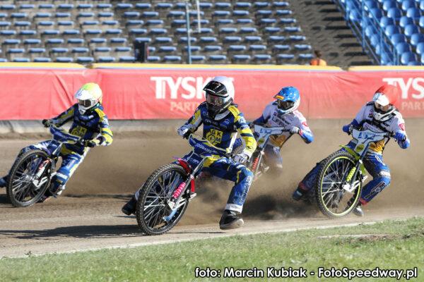 Pludra po starcie nakrył Jabłońskiego, a Łobodziński dołączył do niego na wyjściu z pierwszego łuku. Bardzo pewne podwójne zwycięstwa ZOOLESZCZ GKM-u, który rozpoczyna mecz od mocnego uderzenia.