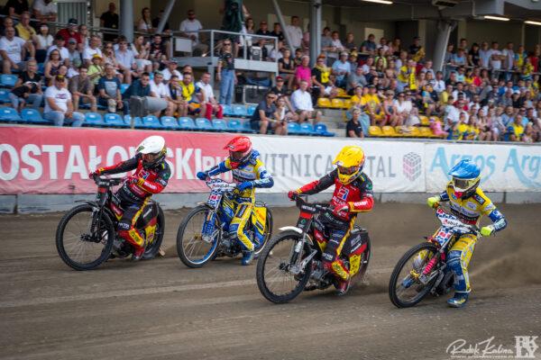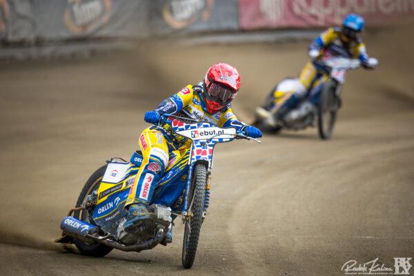 Bartłomiej Kowalski wygrał start, ale na wyjściu z pierwszego łuku pod łokieć wcinał mu się Oskar Paluch. Bieg układał się na remis, ale Michał Curzytek zanotował defekt. ogromna przewaga na mecie Palucha.