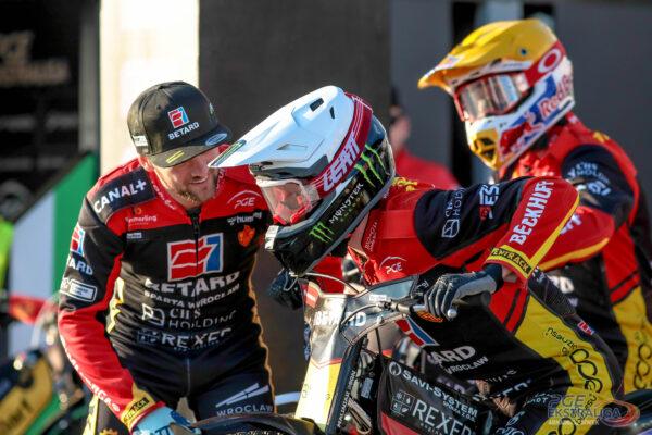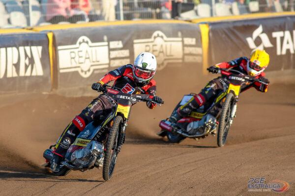 Artem Laguta na wejściu w pierwszy łuk zamknął Kacpra Worynę co wykorzystał od razu Tai Woffinden. Wrocławianie pewnie dowieźli podwójne zwycięstwo.