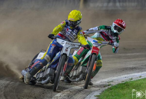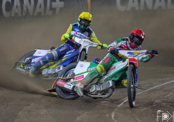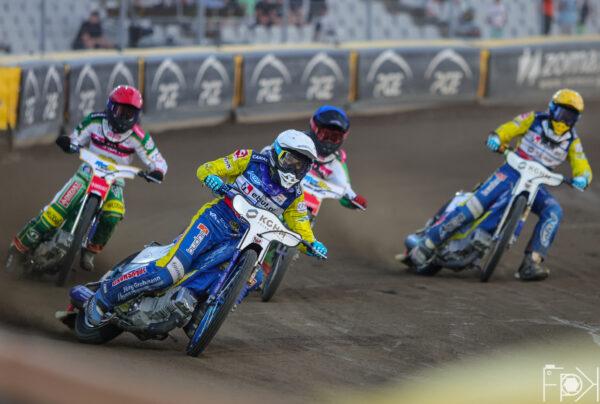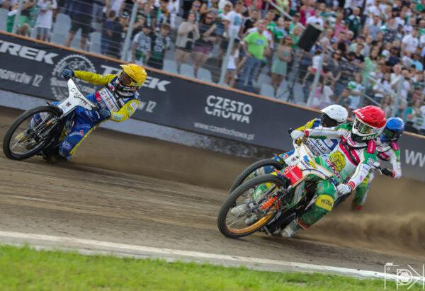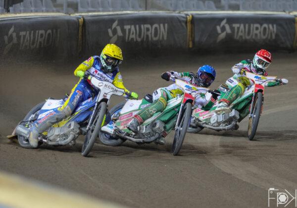 Michelsen najlepiej wyszedł ze startu, ale po dużej napędził się Szymon Woźniak i wyszedł na prowadzenie. Po chwili Jasiński wyprzedził Kupca i Gorzowianie wygrali 4-2 tym samym ponownie wychodząc na meczowe prowadzenie. Fot. Patryk Kowalski