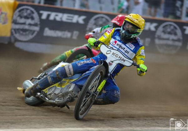 Leon Madsen wygrał zdecydowanie start i pognał po trzy punkty do mety. Piękną walkę o jeden punkt stoczyli Drabik z Woźniakiem. Zwycięsko wyszedł z niej Częstochowianin. Końcowy wynik to 50-40 dla TAURON WŁÓKNIARZA Częstochowa. Częstochowianie meldują się tym samym w półfinale. Fot. Patryk Kowalski