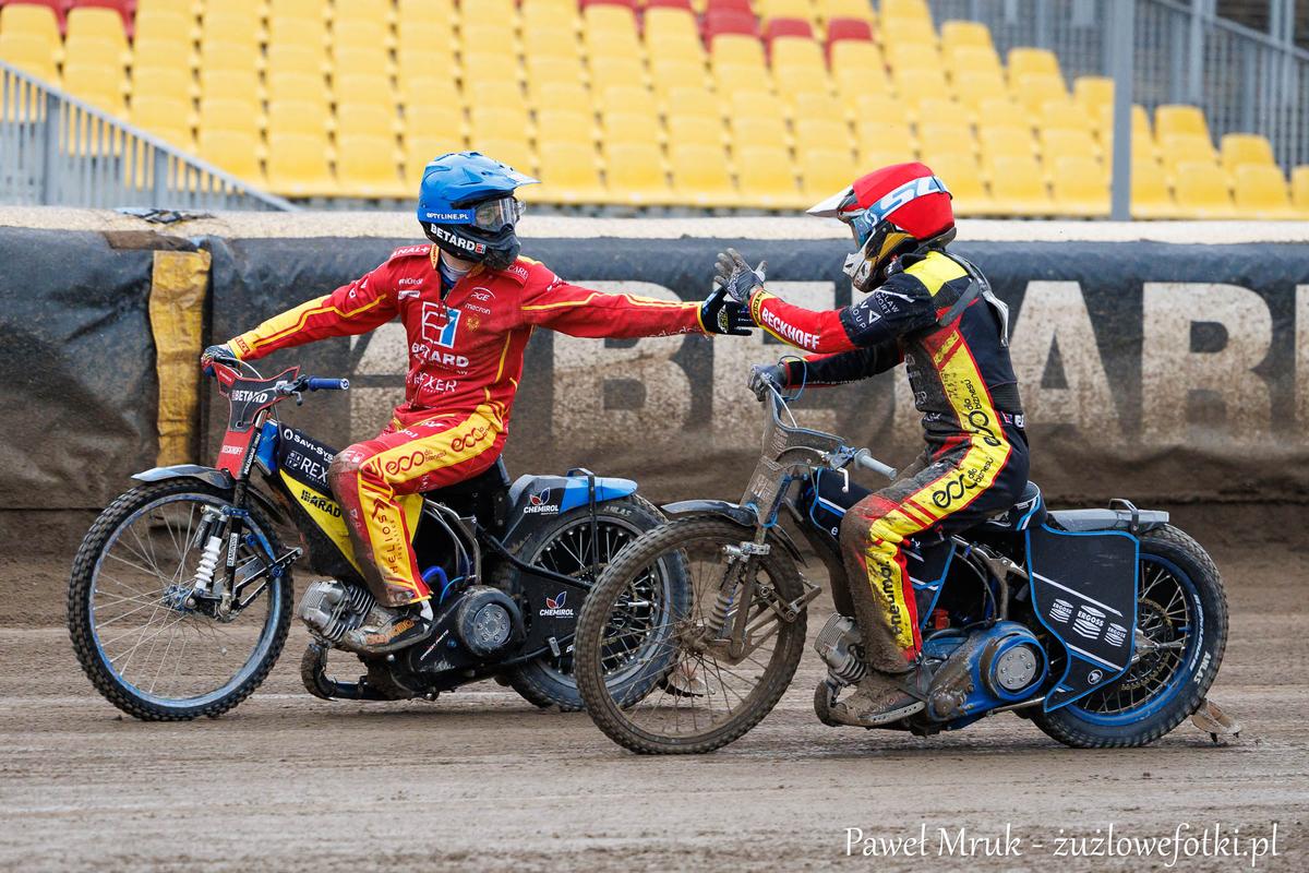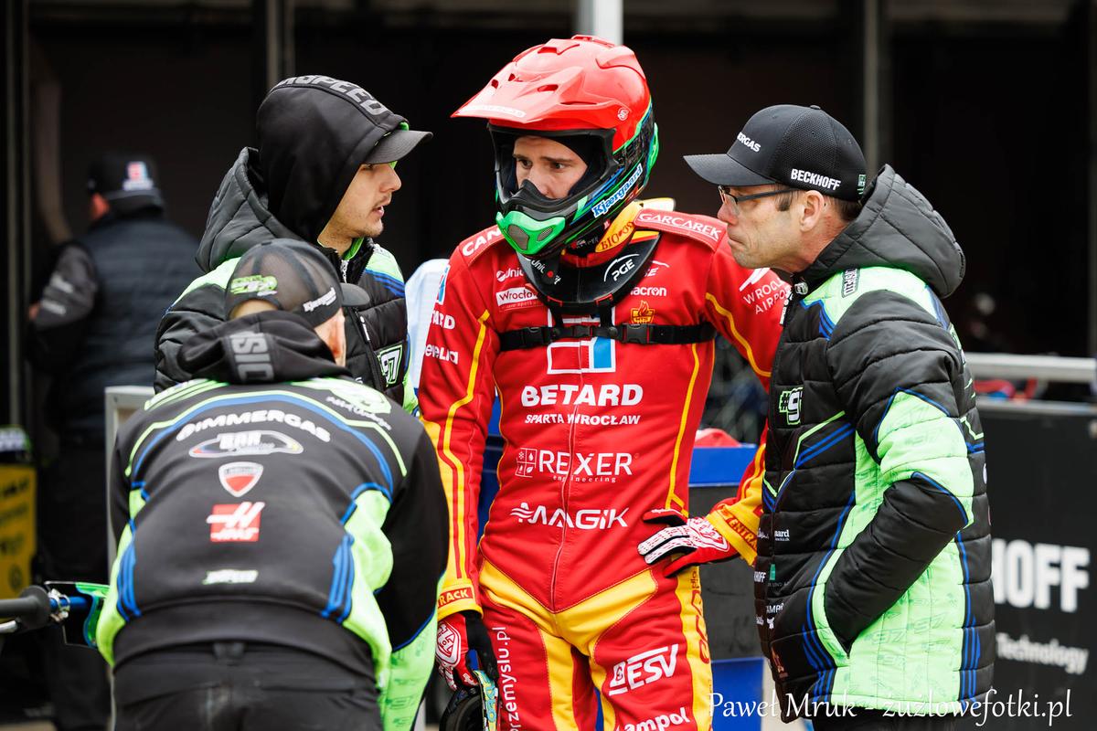 BETARD SPARTA po raz kolejny nie dała choćby najmniejszych szans KRONO-PLAST WŁÓKNIARZOWI Częstochowa w przedsezonowym sparingu. Wrocławianie pokonali u siebie zespół Mariusza Staszewskiego aż 62:16, a najlepszymi zawodnikami obu drużyn zostali Bartłomiej Kowalski (9+3) i Mikkel Andersen (9+3) oraz Rohan Tungate (4) i Jaimon Lidsey (4). Zawody zakończono po trzynastym wyścigu. Zdjęcia Pawła Mruka.