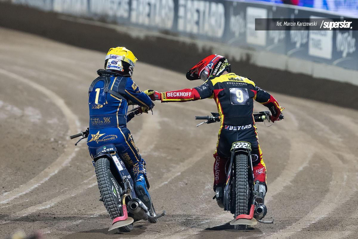 Zwycięstwem ORLEN OIL MOTORU Lublin 43:47 zakończyło się pierwsze spotkanie finałowe PGE Ekstraligi nad BETARD SPARTĄ Wrocław. Liderem gospodarzy był Artem Laguta, zdobywca 16 punktów i bonusa. Dla gości najlepiej punktowali Bartosz Zmarzlik (9+1) oraz Jack Holder (9). Zdjęcia Marcina Karczewskiego.