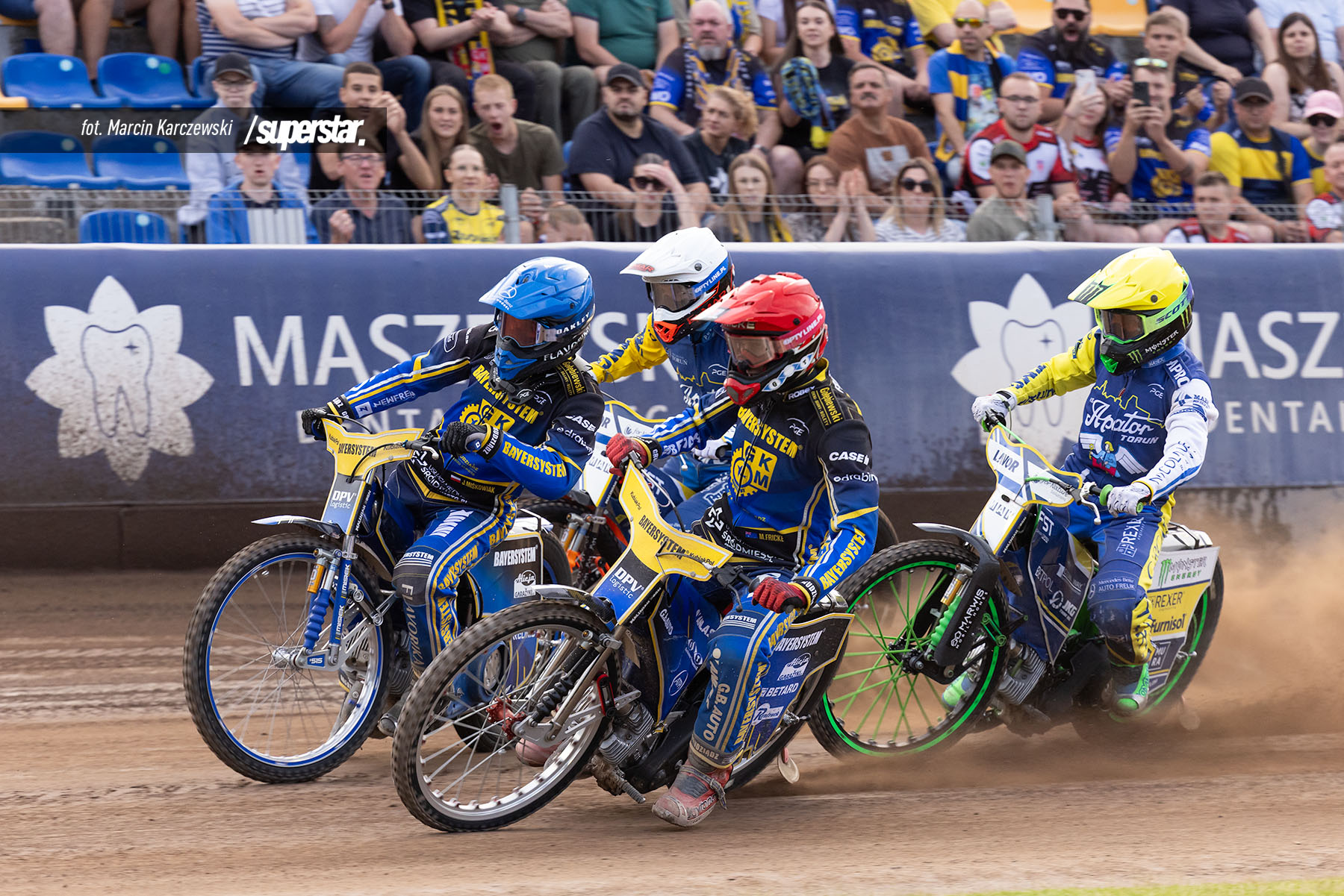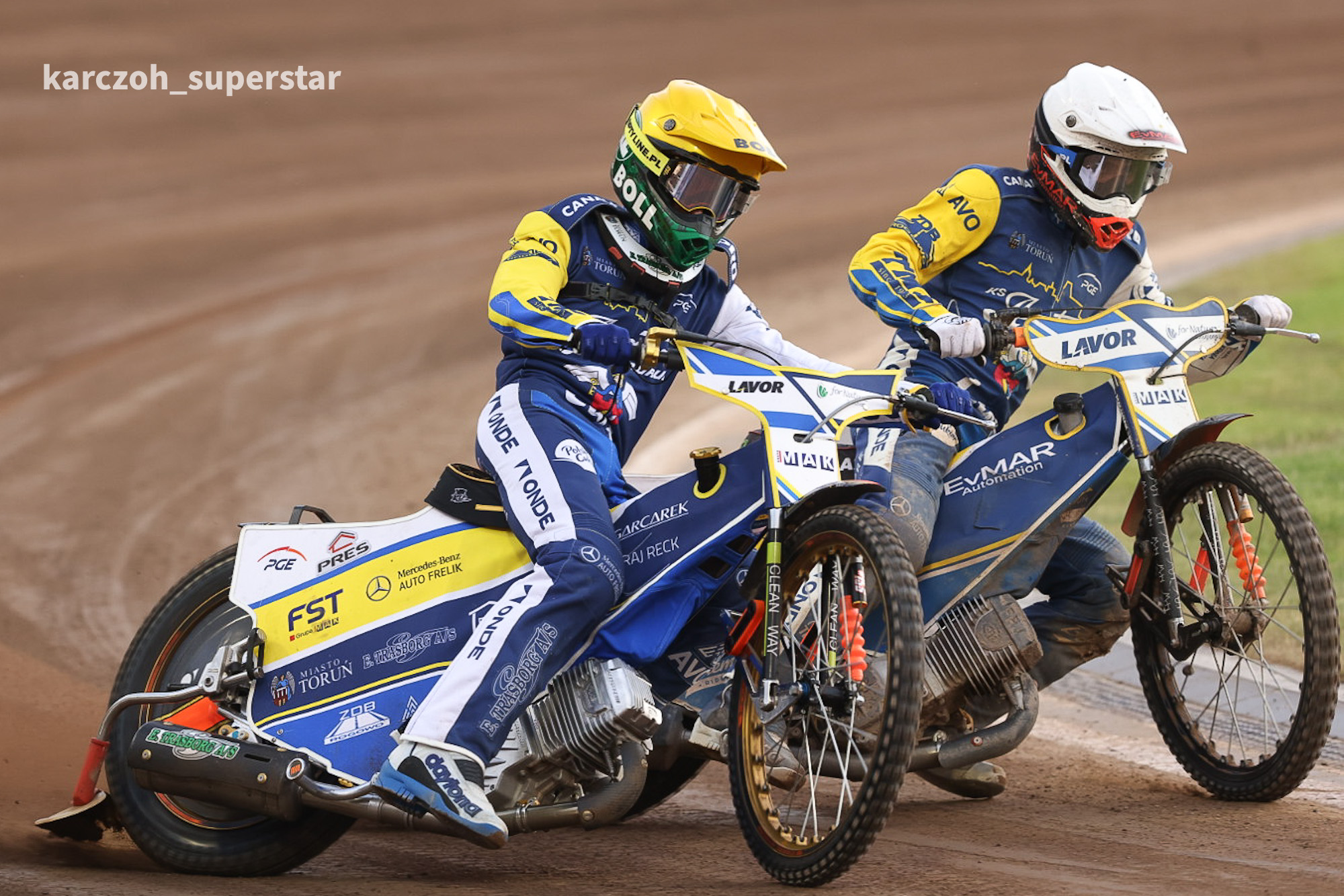 Derbowe spotkanie zespołów z województwa Kujawsko – Pomorskiego to wielkie widowisko, obfite w wiele pięknych mijanek, ale niestety także w incydenty, które zakłóciły ciągłość spotkania. Zwycięzca meczu został wyłoniony dopiero w ostatnim biegu, a była nim drużyna PRES GRUPY DEWELOPERSKIEJ Toruń.
