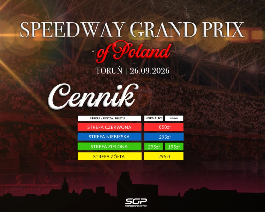 5 grudnia 2025 roku o godz. 12:00 Klub Sportowy Toruń SA rozpoczął sprzedaż biletów na 2026 FIM SPEEDWAY GRAND PRIX OF POLAND – wyłącznie poprzez stronę internetową: https://kstorun.kupbilety.pl