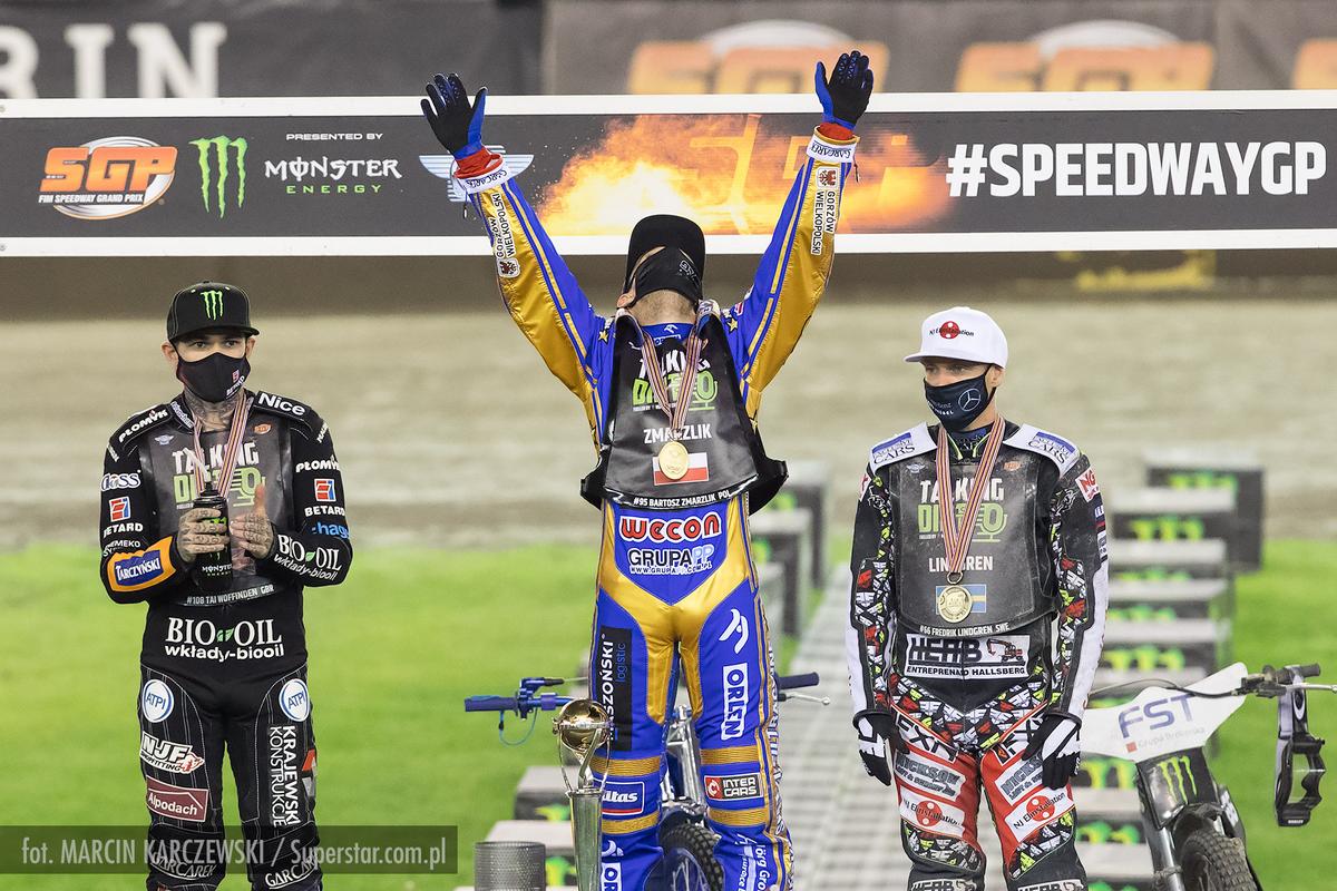 Bartosz Zmarzlik okazał się najlepszy podczas ostatniej rundy FIM SGP na MotoArenie w Toruniu. Dzięki temu, obronił tytuł mistrza Świata. Drugie miejsce zajął Maciej Janowski, a trzeci był Artem Laguta. W walce o srebro lepszy był Tai Woffinden, ale dopiero po biegu dodatkowym. Brąz trafił do Fredrika Lindgrena. Zdjęcia Marcina Karczewskiego.