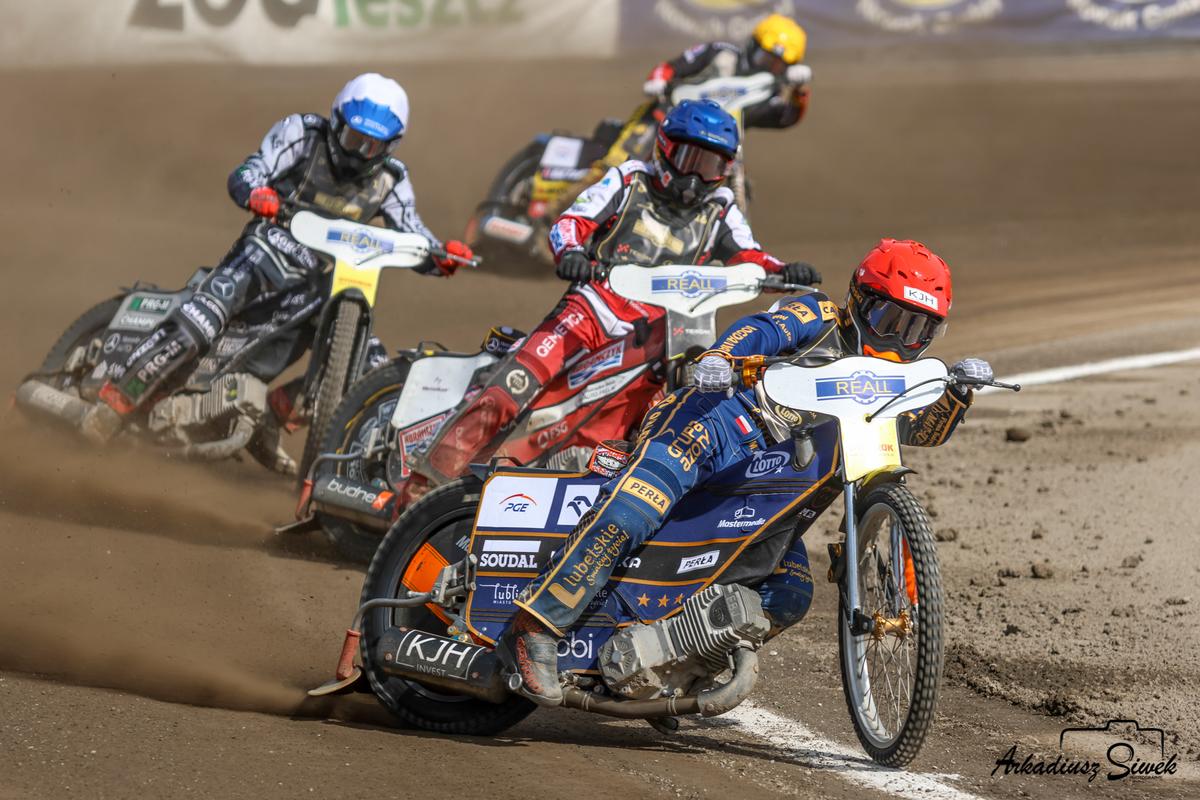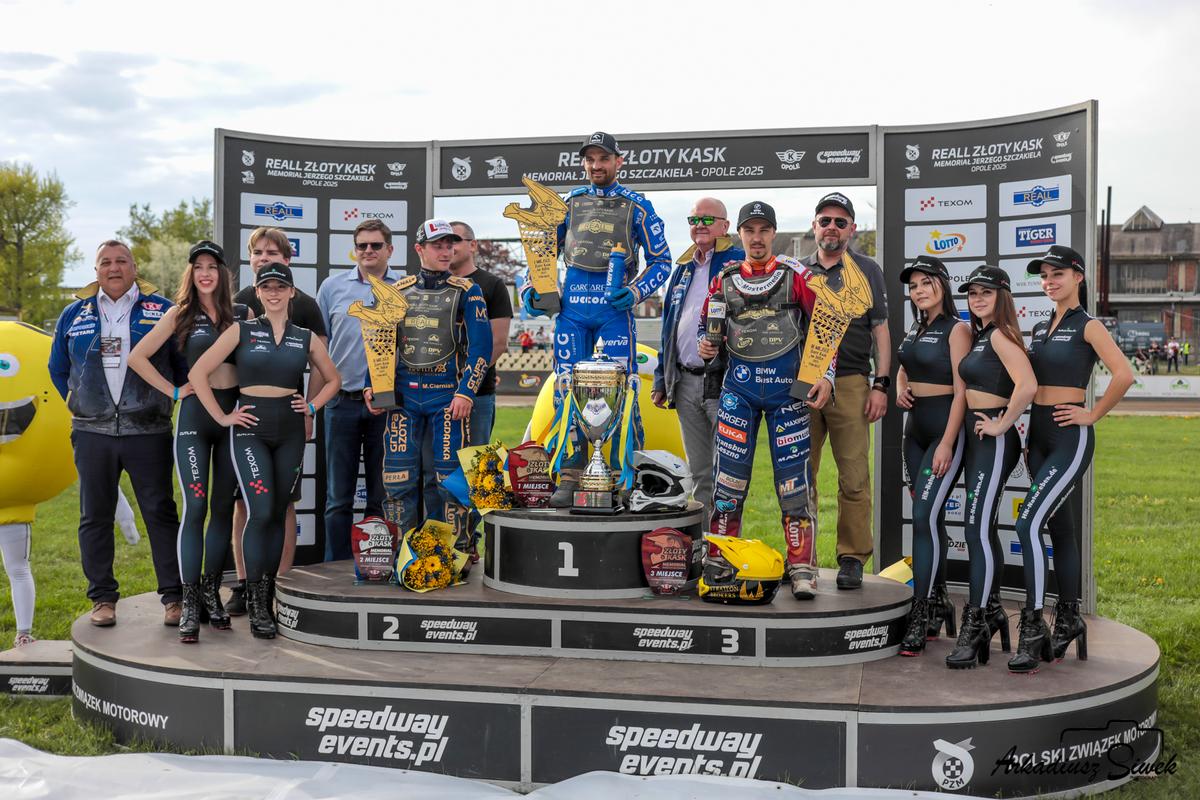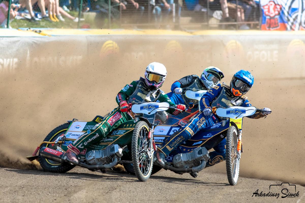 Dwa biegi dodatkowe były potrzebne, aby wyłonić podium tegorocznej odsłony finału Złotego Kasku. Ostatecznie turniej w Opolu padł łupem Bartosza Zmarzlika, który wyprzedził Mateusza Cierniaka oraz Dominika Kuberę. Zdjęcia Arkadiusza Siwka.